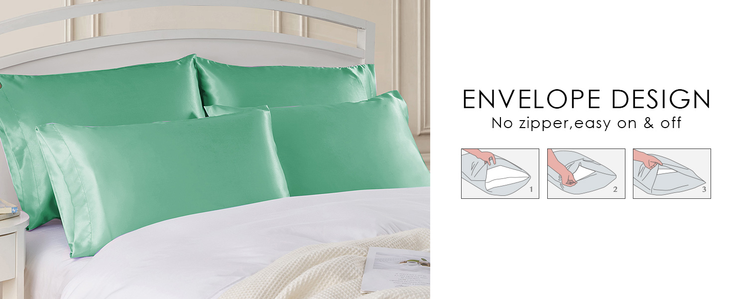 Silky Soft: Made of premium fabric, these silk-like satin pillowcases offer you an extreme smooth and softness. These pillowcases are also gentle on sensitive skin, offering you restful sleep every night.