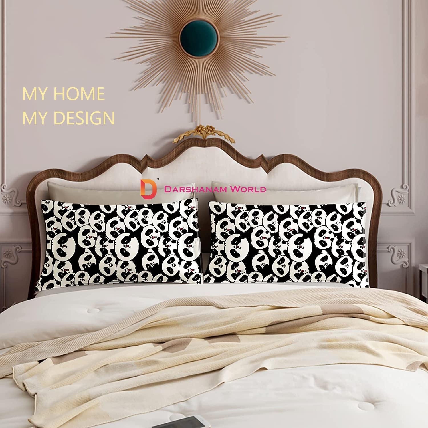 DECORETIVE PILLOW COVER SET OF 2 (BLACK WHITE PANDA)