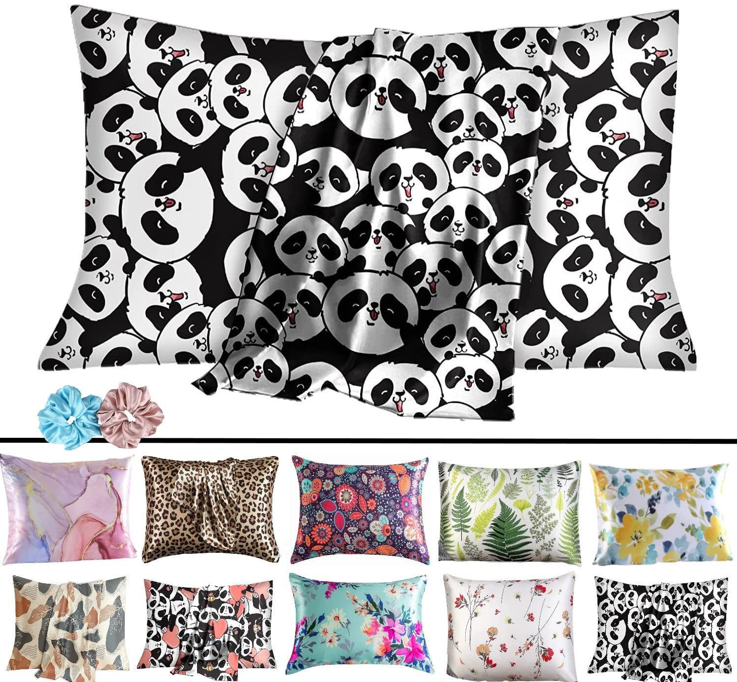 Pillow Cover, Silk Pillowcase for Hair and Skin, Soft Breathable Smooth Both Sided Natural Silk 2 Pillow Covers with Envelope Closure,Stylish 2 Scrunchies for Women
