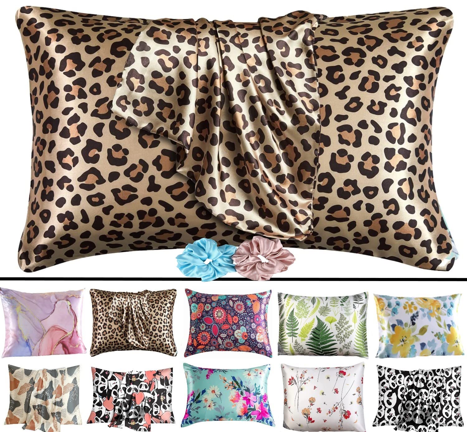 Pillow Cover, Silk Pillowcase for Hair and Skin, Soft Breathable Smooth Both Sided Natural Silk 2 Pillow Covers with Envelope Closure,Stylish 2 Scrunchies for Women
