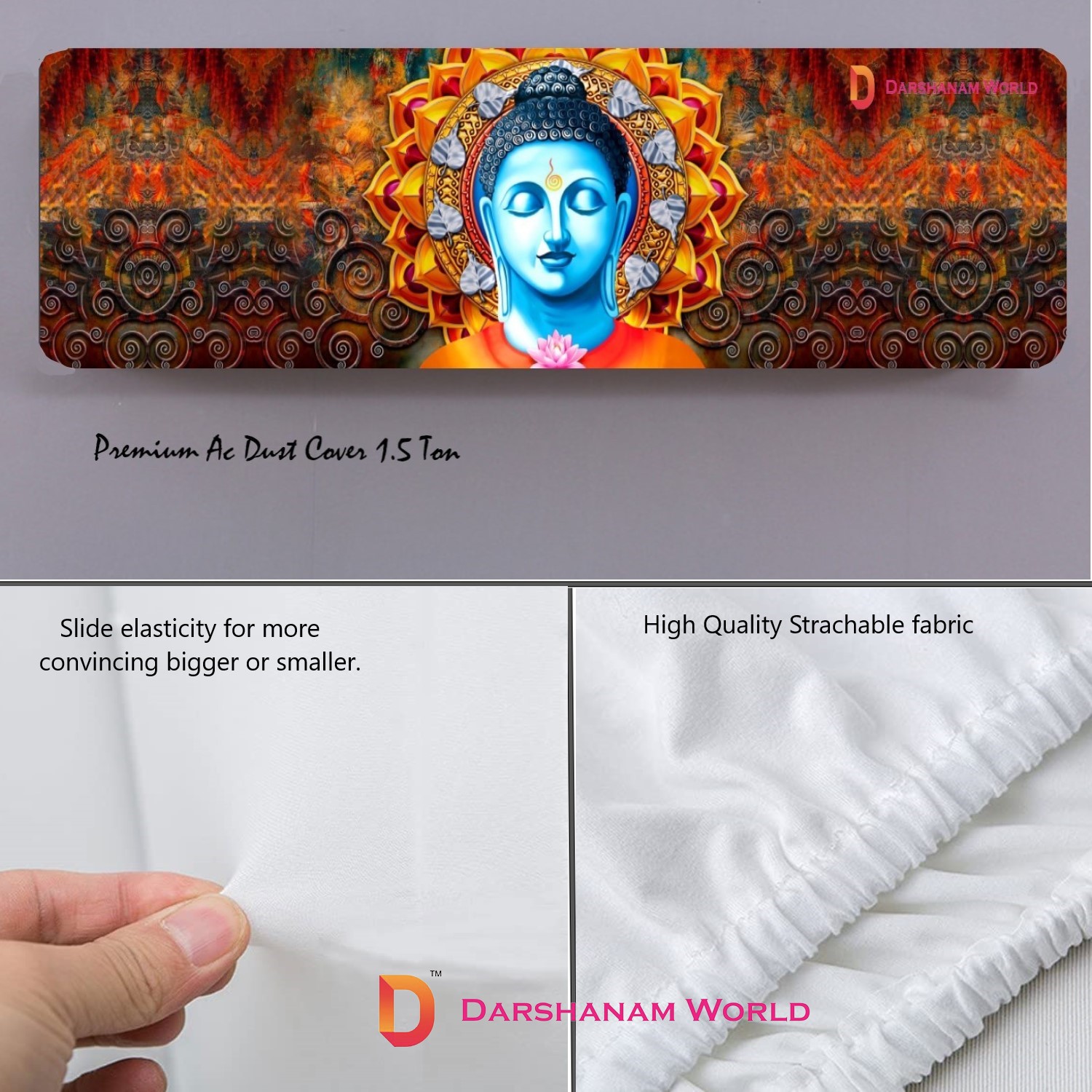 3D Printed Beautiful Ac Cover// Folding Designer Air Conditioning Dust Cover For Indoor & All Type Ac Split Covers For Bedrooms & Hall (Lord Buddha 1.5 Ton)