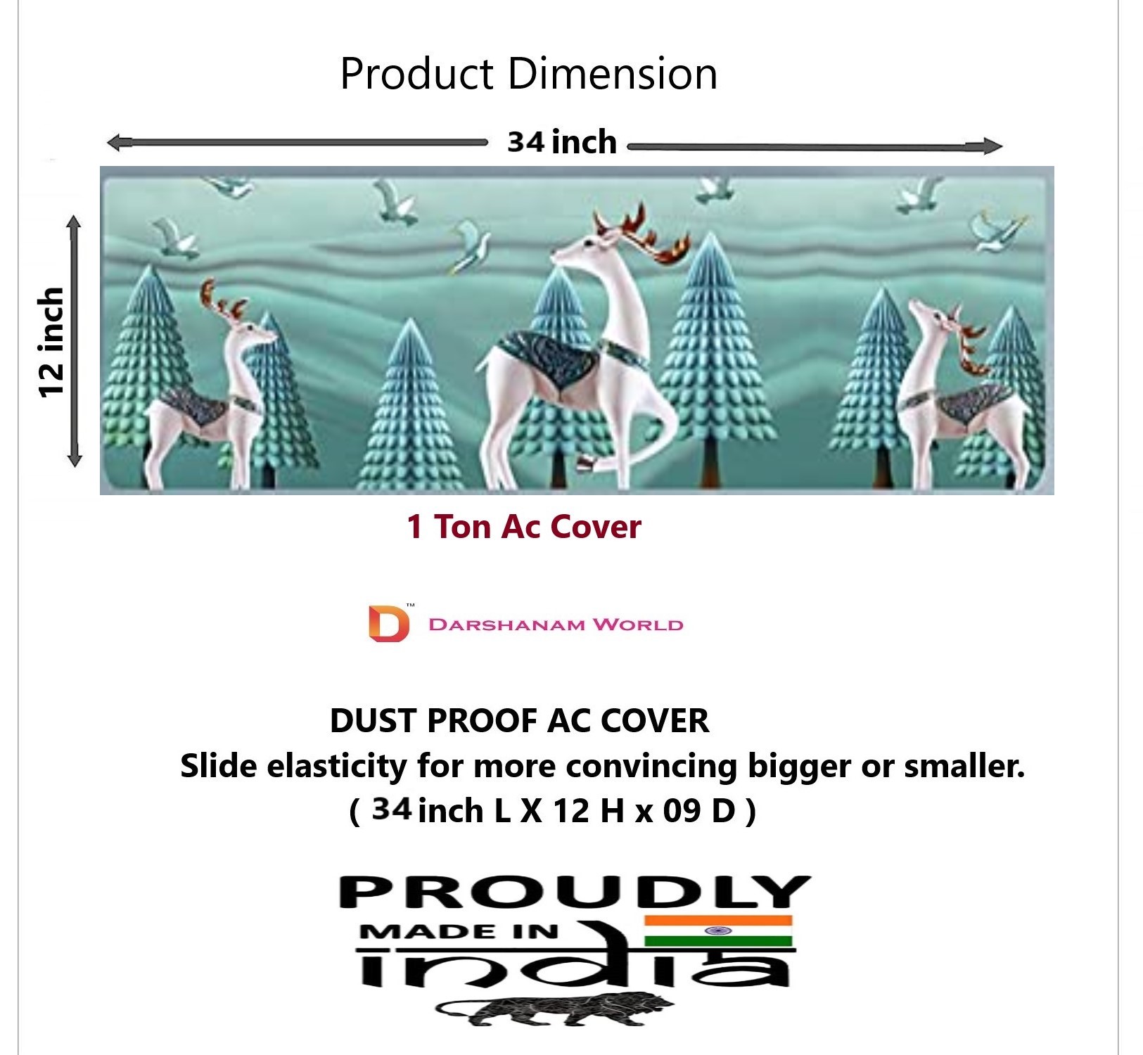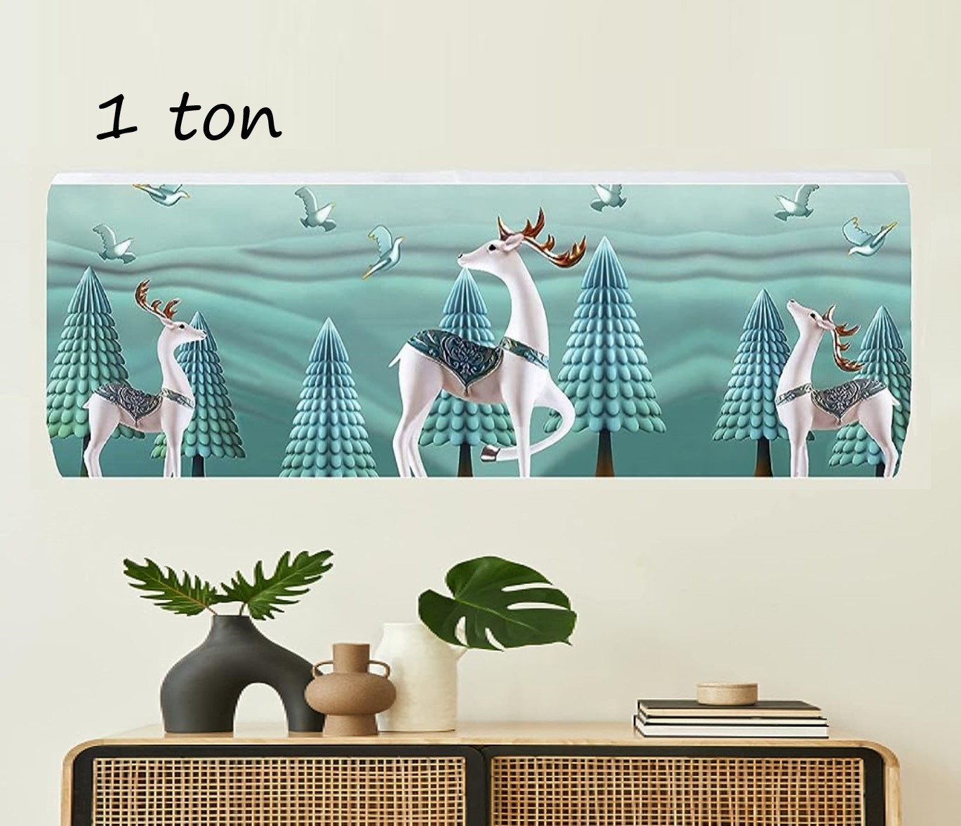 DESIGNER AC COVER FOR 1 TON (3D WHITE DEER) – darshanamworld