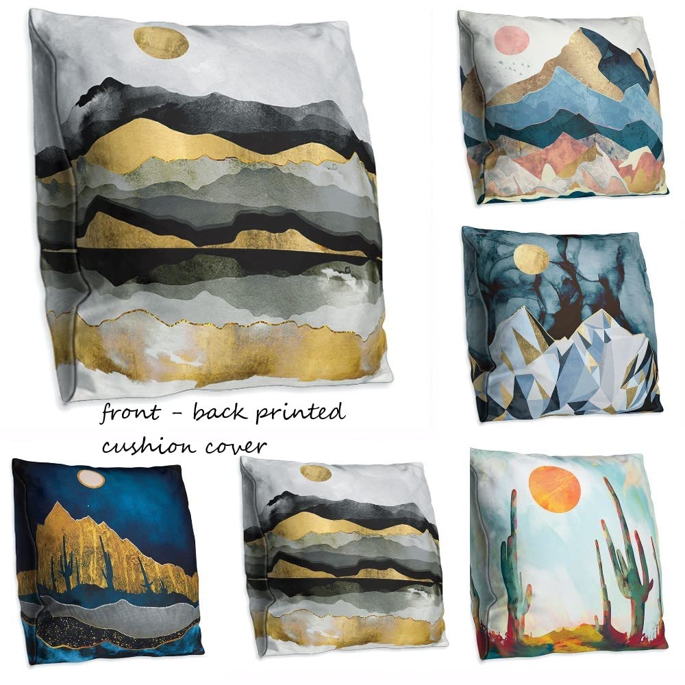 Decorative cushion cover, Satin Abstract Designer Double Side Printed Decorative Throw Pillow/Cushion Covers Set of 5 (16 x 16 Inch) (Cactus Cushion 5)