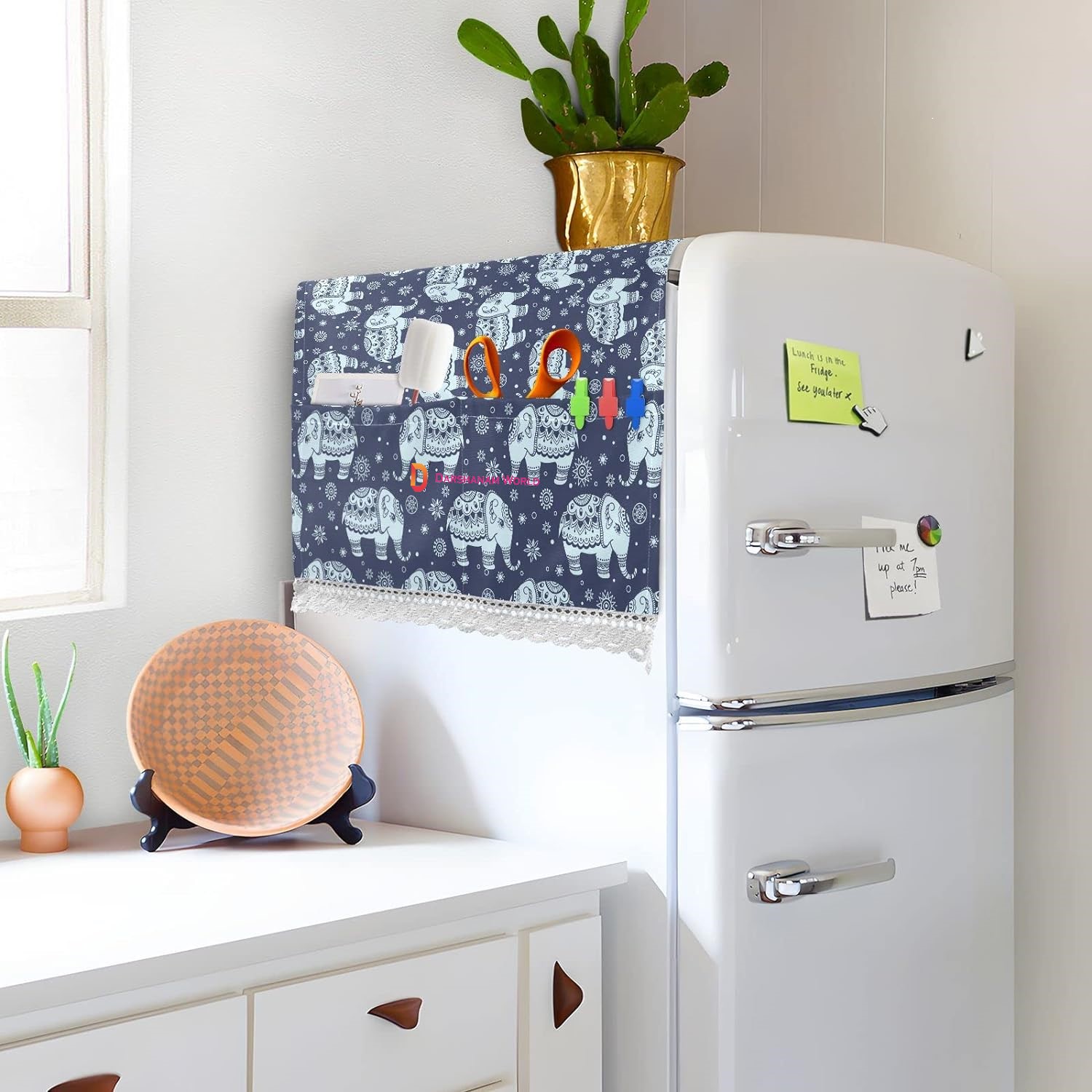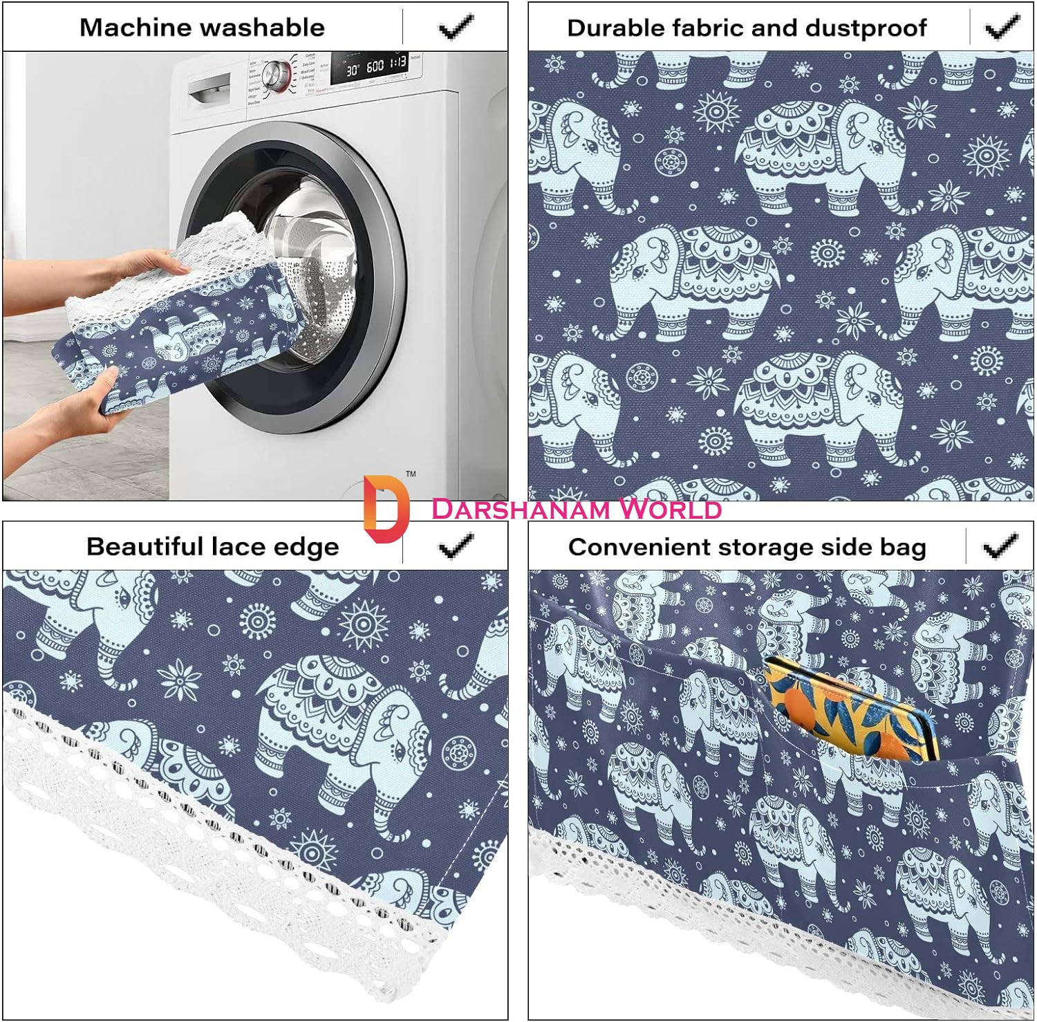 & 𝐖𝐀𝐓𝐄𝐑𝐏𝐑𝐎𝐎𝐅 𝐌𝐔𝐋𝐓𝐈 𝐏𝐔𝐑𝐏𝐎𝐒𝐄: The modern design allows various uses such as camping table covers and tablecloths, Fridge Top Cover. The cover has great design which enhances the beauty of the fridge and the kitchen.