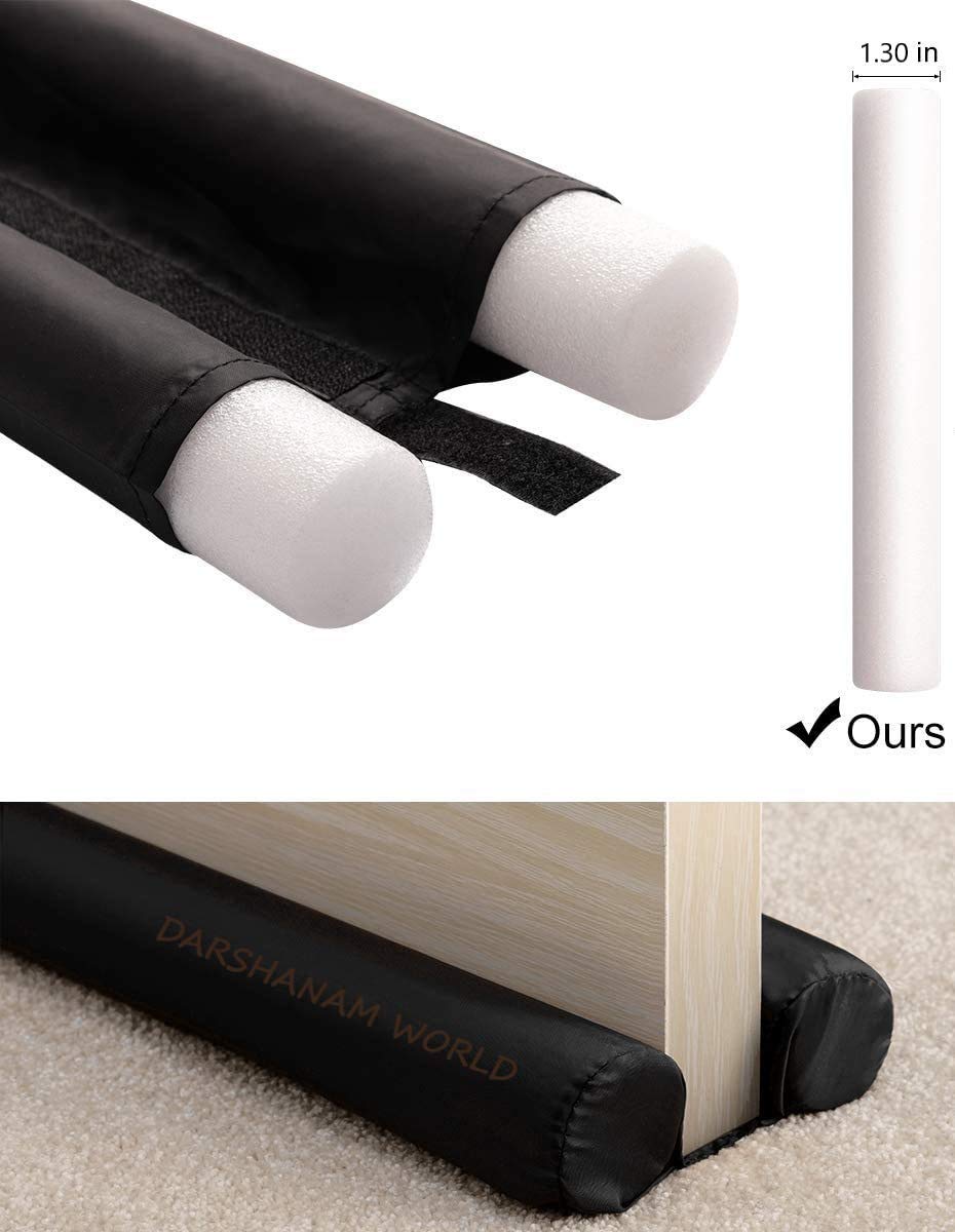 - door draft stopper keeps the cold air staying out and the heat staying in with both sided protection. Also great for blocking noise, Light, Bugs, Dust and fumes.