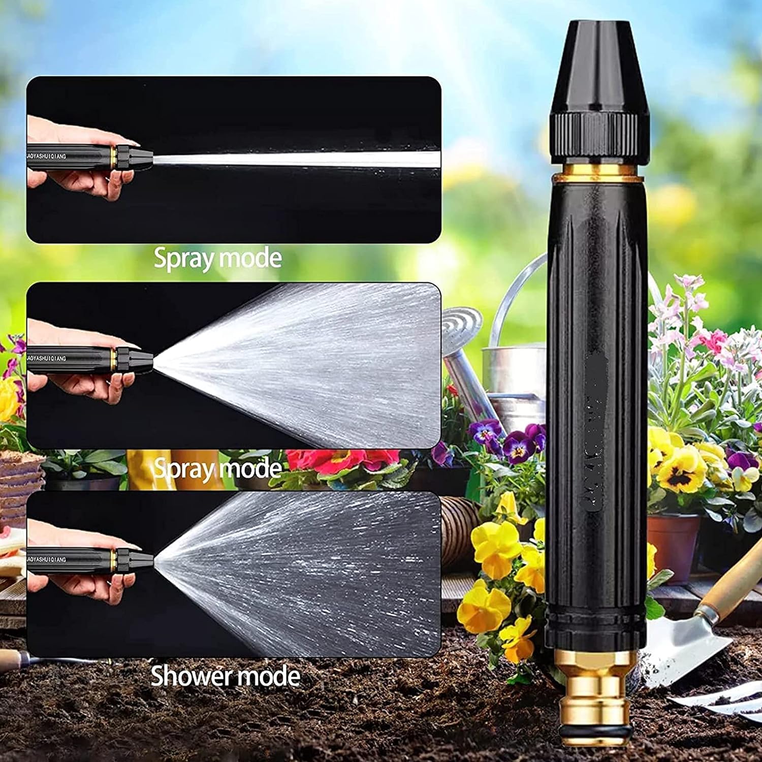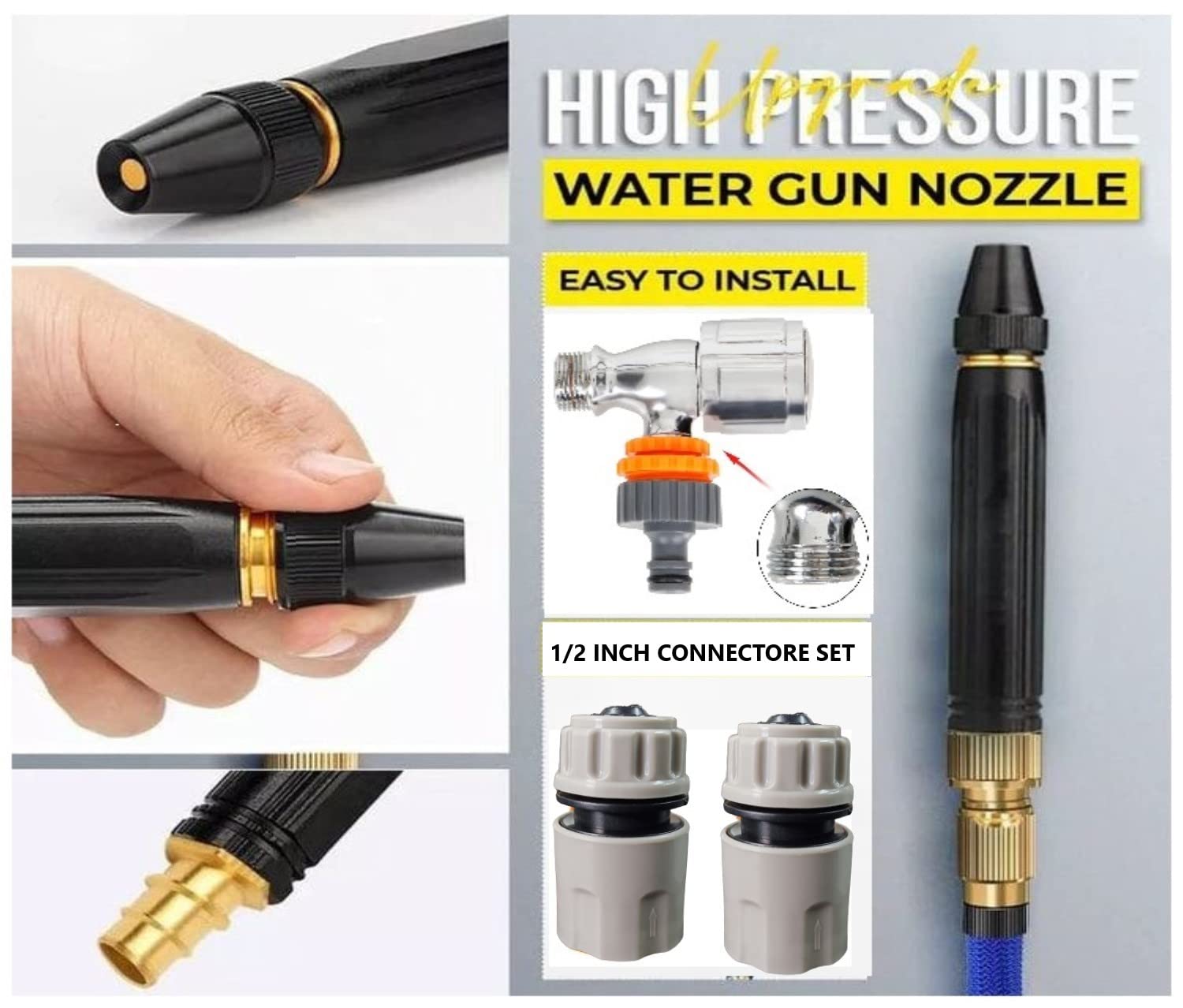 Garden Hose Nozzle Car Washing Nozzle With Connector (Black Gun With Connetor Set)