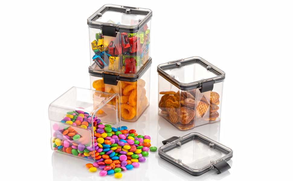 Airtight kitchen storage containers set Keep Food Fresh-The lids with silicone gasket make these storage containers airtight, and the top flips open easily. Airtight storage system will always keep your food dry and fresh. All have the same lids make it easy to wash dry and reuse with ease. We can also use for spice containers for kitchen storage . Perfect ! plastic containers for kitchen storage .