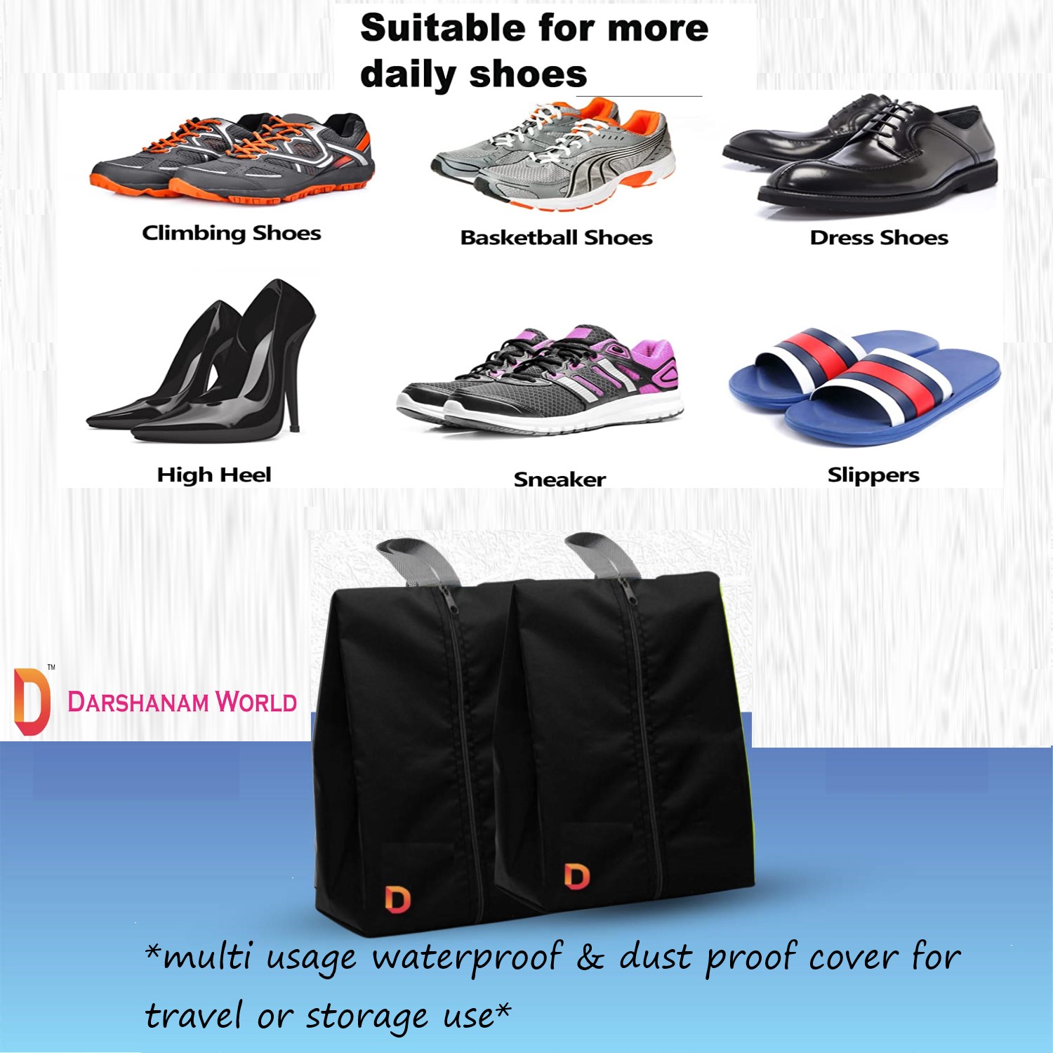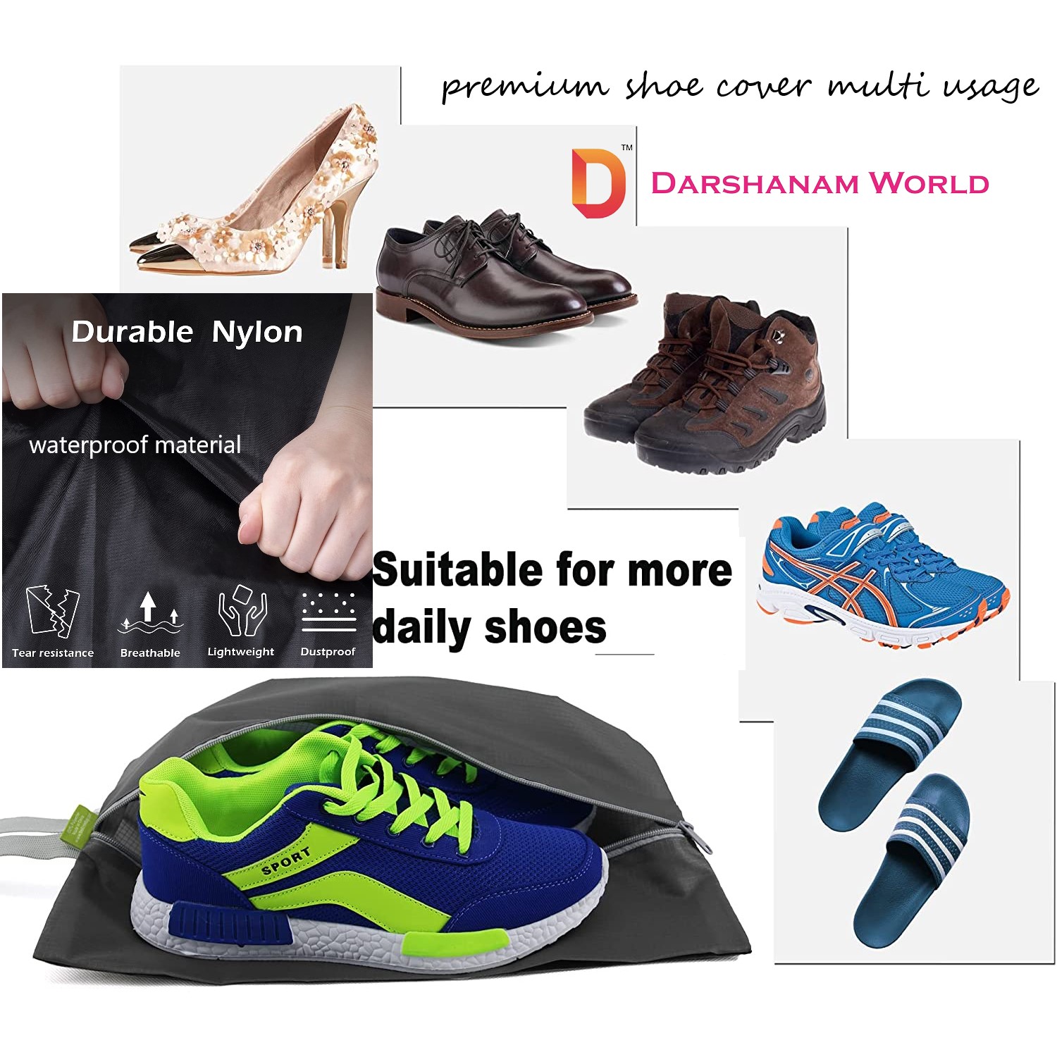 Machine Washable: The travel shoe bags are made of polyester nylon, lightweight, breathable, and more sturdy than Non-Woven. With durable fabric, our golf shoe bags can keep shoes away from water droplets. After repeated use, you can put it into the washer directly. Then the shoe travel bag can be restored to like new.