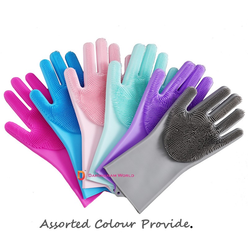 Silicon Hand Gloves For Cleanin-Multicolor (Silicon Gloves)