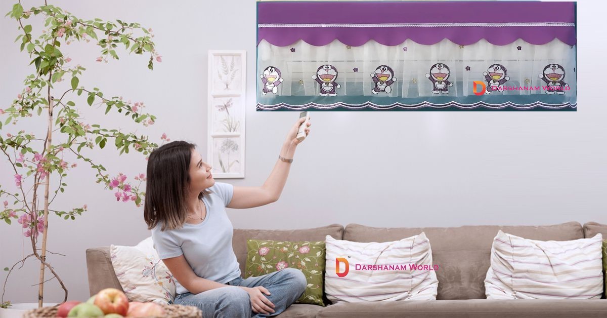 Cute Printed AC Cover For 1.5 Ton, Premium Work Indoor AC Dust Protection Cover, Folding Adjustable Designer Ac Split Cover